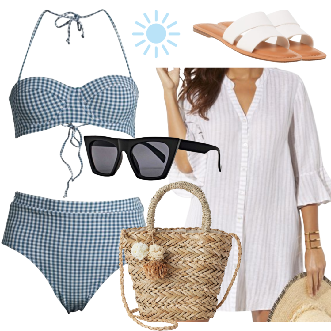 Swimsuits for All Cover Up / Juicy Couture Swimsuit / Time and Tru Sandals / Eliza May Rose Bag / San Diego Hat Company Sunglasses