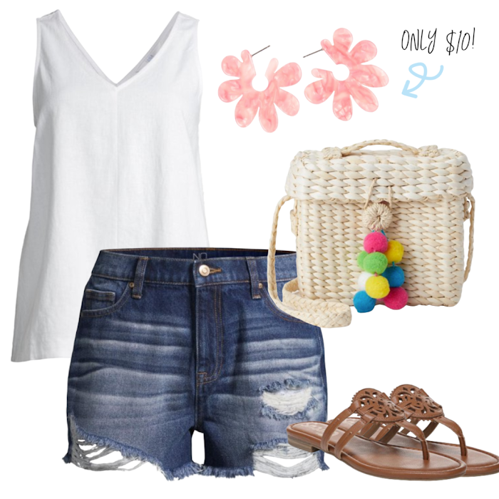 Time and Tru Top / No Boundaries Shorts / Circus by Sam Edelman Sandals / Eliza May Rose Bag / Riah Fashion Earrings