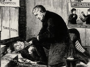 As soon as the ambulance cart (above) arrived, Dr. Phillips ordered the body be removed. The Bobbys lifted the mutilated corpse into a wicker coffin, which they used to carry the dead woman through the hall, out onto Hanbury Street. The doctor walked with the Bobbys pushing the ambulance cart to Brick Lane, then across to Montague Street, before turning east, followed by a crowd growing in numbers and agitation. They arrived at the Eagle street entrance to the Montague Street Mortuary a few moments before 7:00 am.