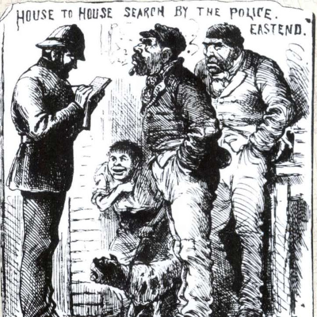 The London Evening News reported a conversation between “workmen” that seemed to hint at revolution brewing behind the slaughter. “But I want to know what the police is about?" This was met with the sneering observation of a companion, "Well, you must be a fool to ask a question of that sort. Why, the 'perlice' is too busy looking arter the changing of bus hosses in the West-end, and a-watchin' o' Trafalgar Square, to care what becomes of poor devils like us." The murmurs of approval which greeted this homely satire showed that the feeling towards the guardians of the peace is one of distrust...”.