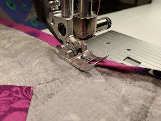 I love being able to bind the quilts without having to put a walking foot on the sewing machine. The IDT technology on the PFAFF is amazing! I'll try and remember to post the links to my binding techniques today. If you haven't learned to put a binding on with the sewing machine, you should give it a whirl. Yes - I know that we have all the time in the world to hand stitch those bindings on, but for everyday quilts? I wouldn't consider doing them by hand. Even if you sew one side by hand, there are still amazing tips in those links to help you get the binding on right. There are several big issues with binding - the seam allowance is too narrow, the mitered corners are NOT miters, and the seams are not pressed correctly.