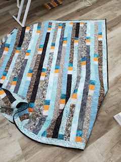 I started with this quilt. The binding needed to be made. I very quickly made the binding and started to sew it on. I was almost finished when I realized that this is NOT going to Quilts of Valour and thus the binding could have waited until we had a community projects sewing day. Oh well - one less that went in that pile in the storage room.