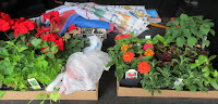 This morning I went all the way across town (must be all of five miles) to Lindsley's Greenhouse to pick up my plants order. Look, plants! If it hadn't been raining all day I'd have gotten things planted but I'm determined to plant tomorrow even if the soil in the pots and planters is soupy mud. It's time to get things in the ground and growing.